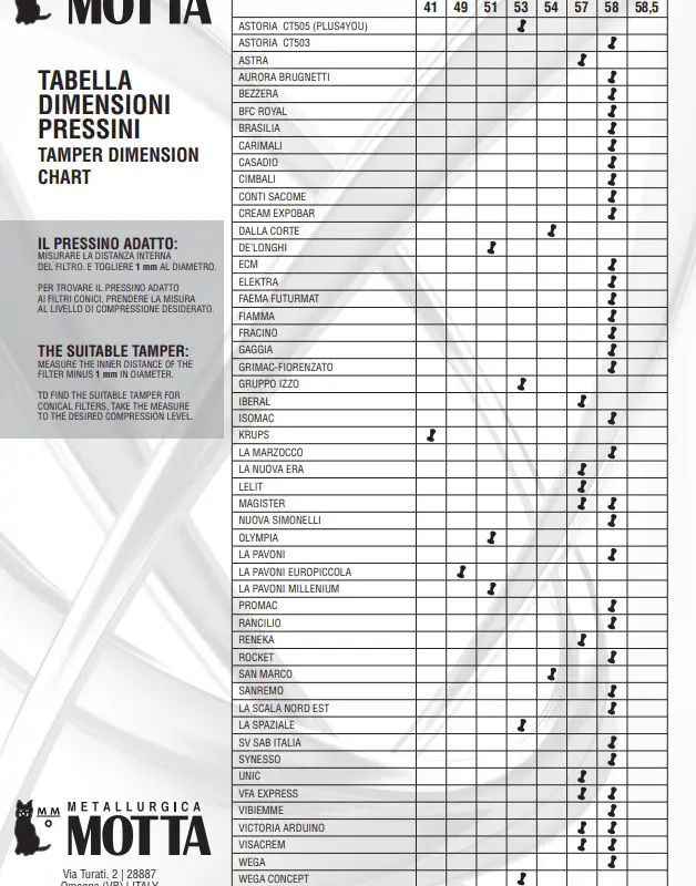Motta инструмент за подравняване на кафе 58 мм.