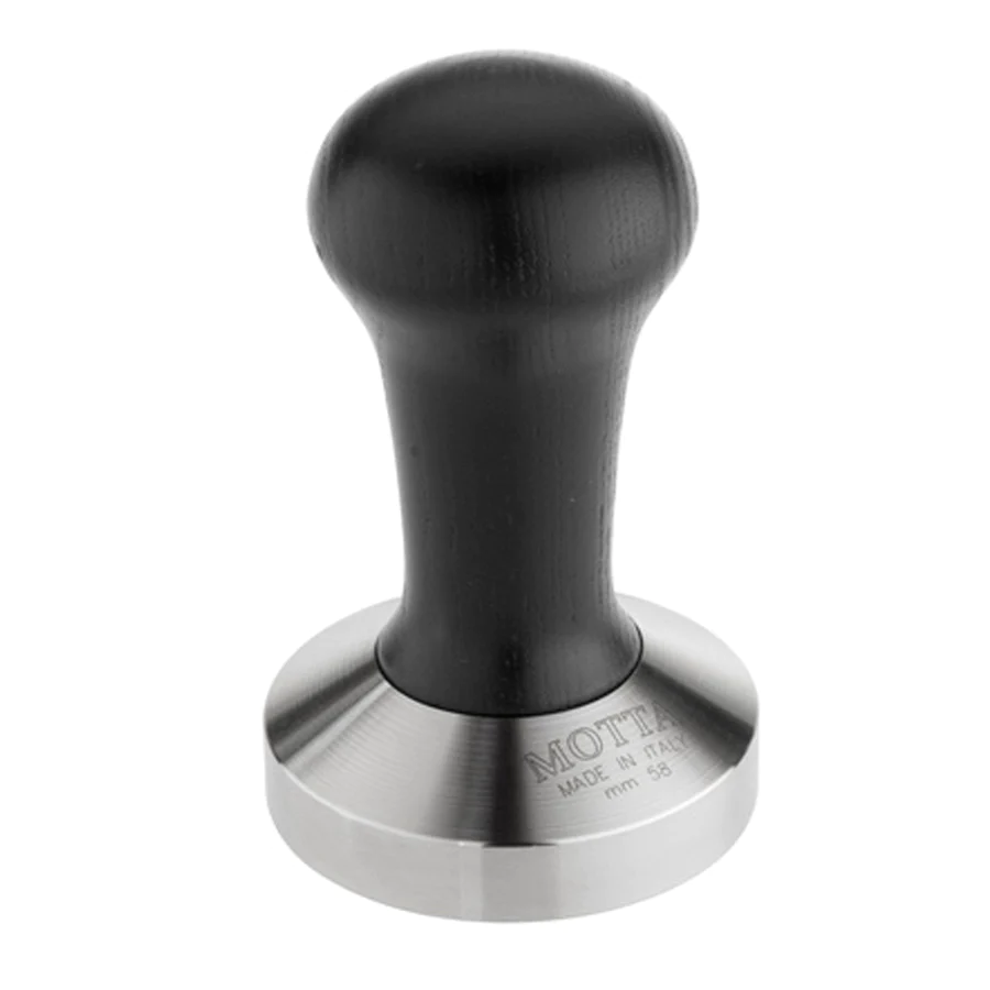Тамперът на Motta с незалепващо покритие е красив и здрав инструмент, изработен от неръждаема стомана. Той разполага с кафява дървена дръжка и има плоско дъно от неръждаема стомана.
