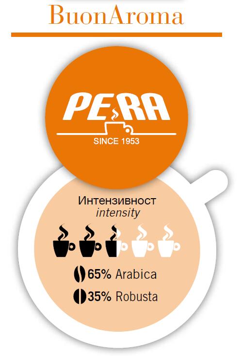 Комбинацията от двата сорта произвежда плътно и ароматно кафе с интензивен и балансиран вкус.