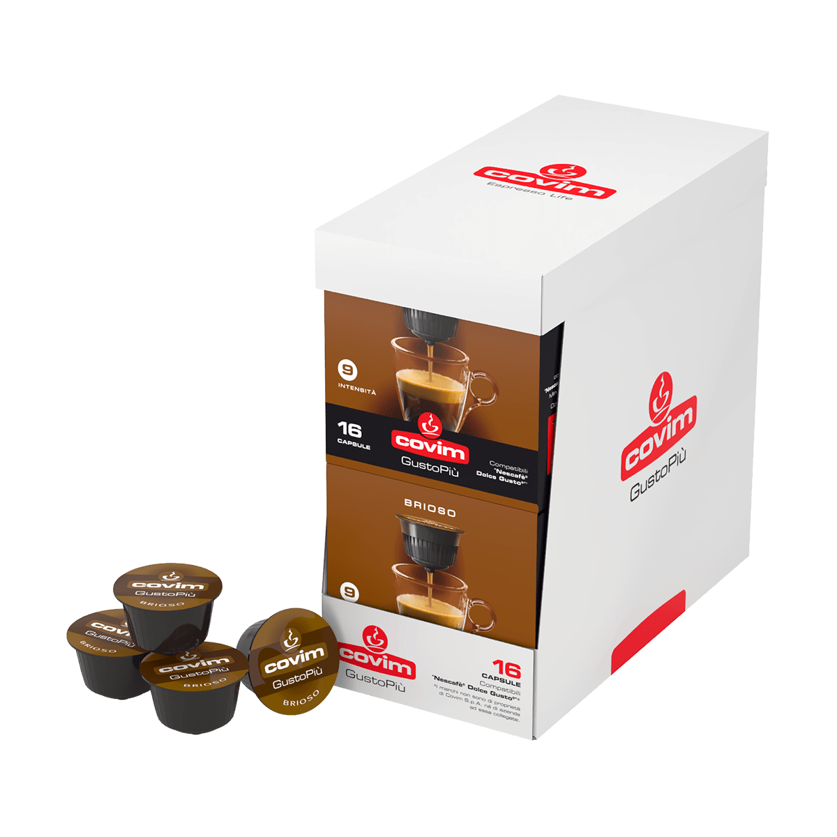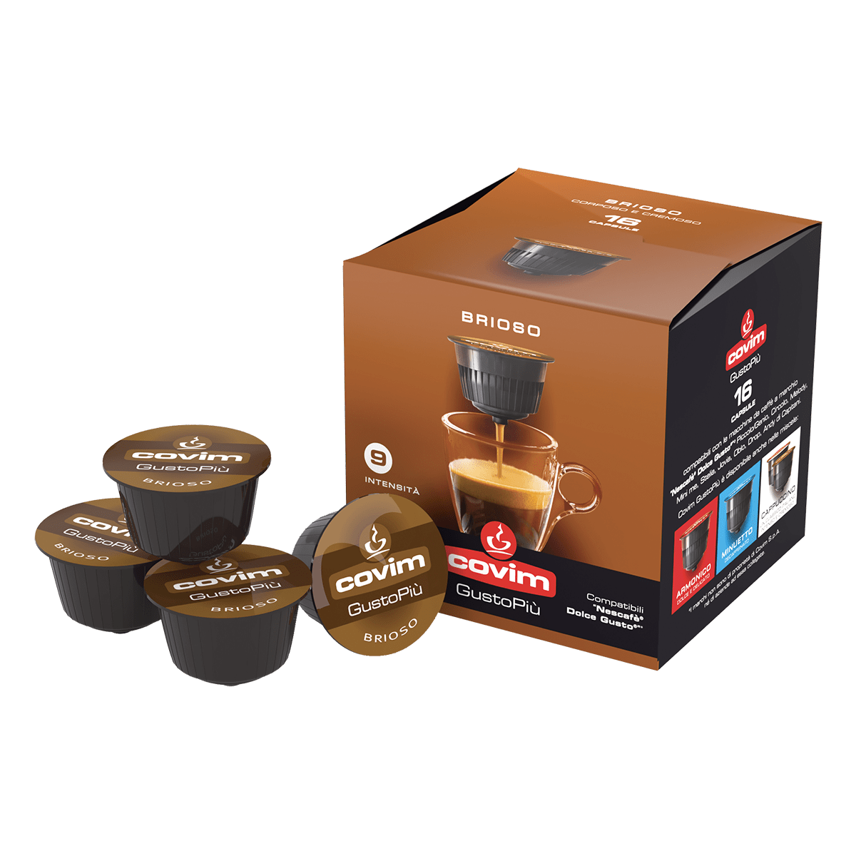 • Кафе на капсули Covim „ Brioso “ – Dolce Gusto – селектирани кафе-блендове,гарантиращи оптимално представяне в чаша.